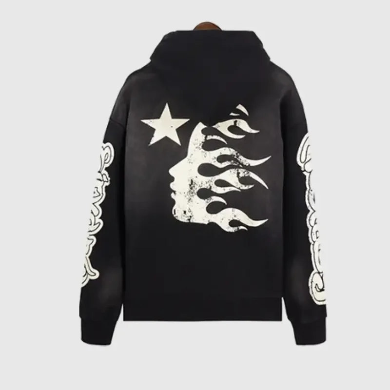 Hellstar Clothing offers a full spectrum of bold streetwear designed for comfort, attitude, and individuality. Its most iconic pieces are the Hellstar hoodies and sweatshirts, crafted from heavyweight fleece with signature flaming star graphics, oversized fits, and vintage washes that embody the brand’s rebellious edge. Hellstar T-shirts and shirts deliver everyday wearability with high-quality cotton and striking front-and-back artwork that reflects cosmic and spiritual themes.