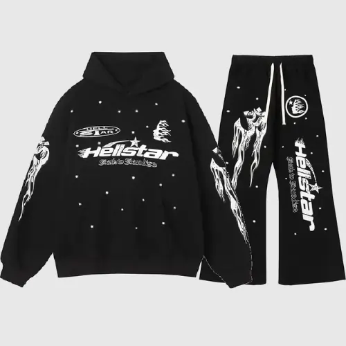 For a complete look, the brand’s sweatpants and shorts bring relaxed silhouettes with coordinated graphics and logo placements, while the tracksuits combine matching tops and bottoms for effortless street-style coordination. Outerwear options like windbreakers, puffers, and collaboration jackets showcase the brand’s flair for statement design, while long-sleeve tees and layering pieces provide versatile wardrobe essentials. Hellstar also offers accessories such as hats and caps, all unified by its dark, futuristic aesthetic. With every collection, Hellstar Clothing merges luxury craftsmanship with an underground vibe, redefining modern streetwear through fearless creativity.